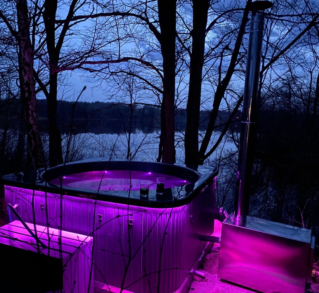 Kubls pie mājiņas “Līdaka” – privāta un mājīga atmosfēra tuvāk dabai. Ar gaisa masāžu un LED apgaismojumu. Cena – 80 Eur/par vakaru.